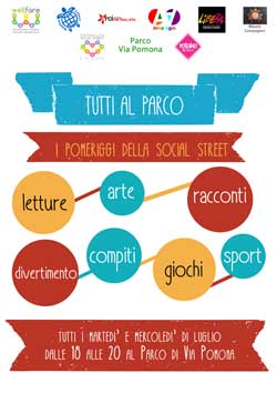 Tutti al parco – I pomeriggi della Social Street sono stati momenti di gioco, incontro e divertimento per bambini, ragazzi e giovani realizzati presso il Parco di Via Pomona a Pietralata.
